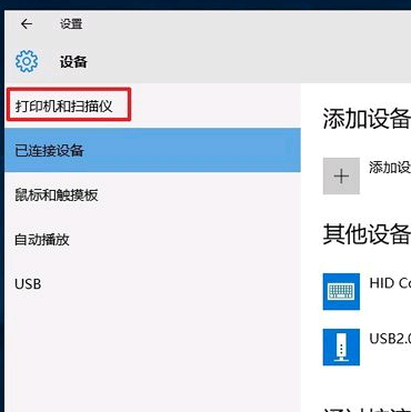 点击设备窗口中的打印机和扫描仪选项。