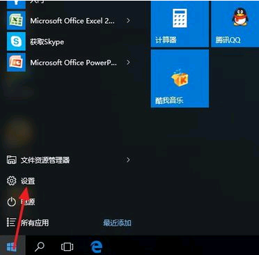 开始菜单,点击左侧的小齿轮,打开设置。
