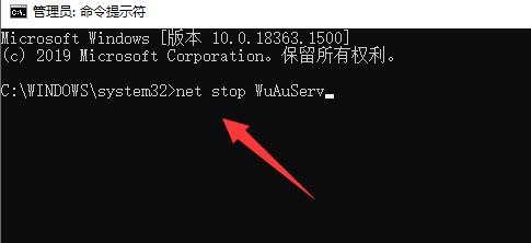 4.修改后重复上述操作,打开cmd,输入“net stop WuAuServ回车确定即可。