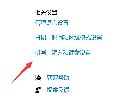 4、接着点击右侧“拼写、输入和键盘设置”