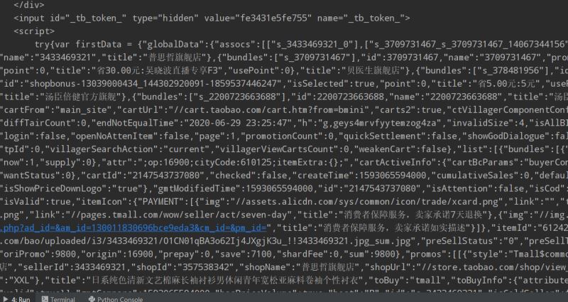 import scrapy class ItaobaoSpider(scrapy.Spider): name = 'itaobao' allowed_domains = ['taobao.com'] start_urls = [ 'https://cart.taobao.com/cart.htm?spm=a1z02.1.a2109.d1000367.OOeipq&nekot=1470211439694'] # 第一次就直接访问购物车 def parse(self, response): print(response.text)