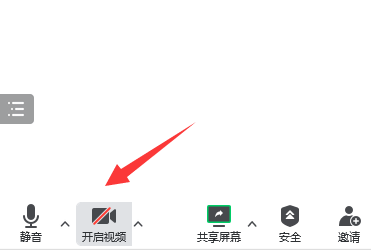 4、如果已经在会议里,那么点击左下角“开启视频”也能打开摄像头。