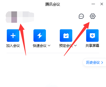 1、首先将腾讯会议打开,点击右上角的“齿轮”打开设置。