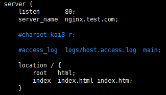 listen 80;代表监听80端口 server_name xxx.com;代表外网访问的域名 location / {};代表一个过滤器,/匹配所有请求,我们还可以根据自己的情况定义不同的过滤,比如对静态文件js、css、image制定专属过滤 root html;代表站点根目录 index index.html;代表默认主页