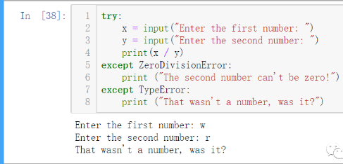 这里就需要多个except子句来帮忙了,举个例子: