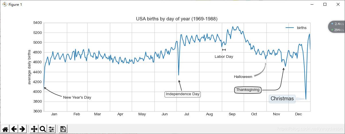 让我们用前面的美国出生人数图来演示一些箭头注释