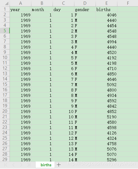 数据可以在 https://github.com/jakevdp/data-CDCbirths 下载,数据类型如下:
