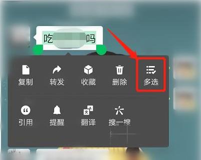 1、首先进入微信,长按里面的信息,然后点击“多选”。