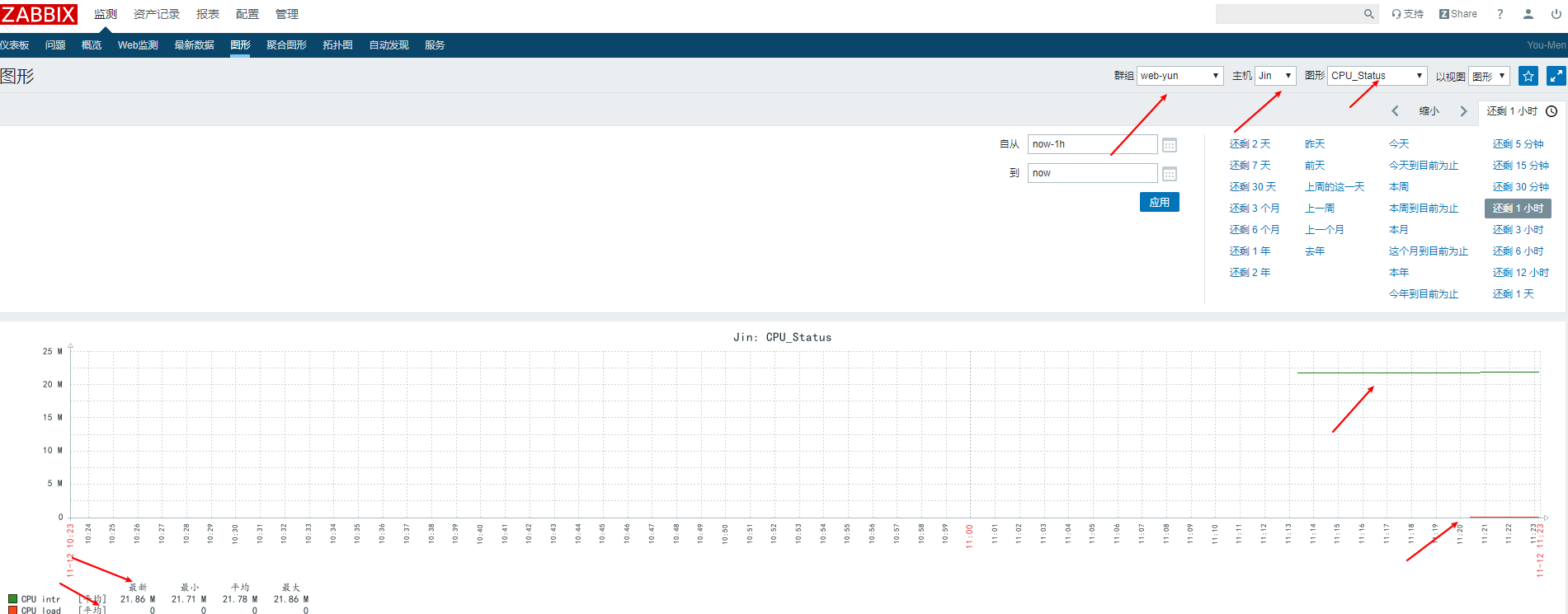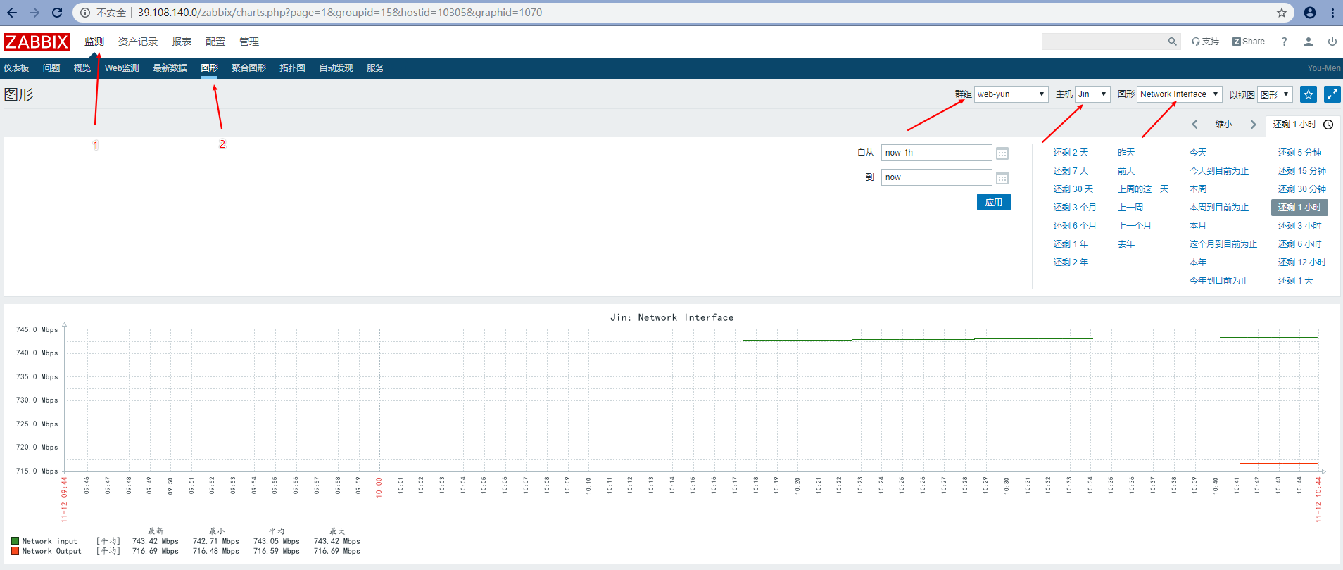 接下来我们去查看监测 ---> 图形,选择相应群组,相应的主机及创建的图形
