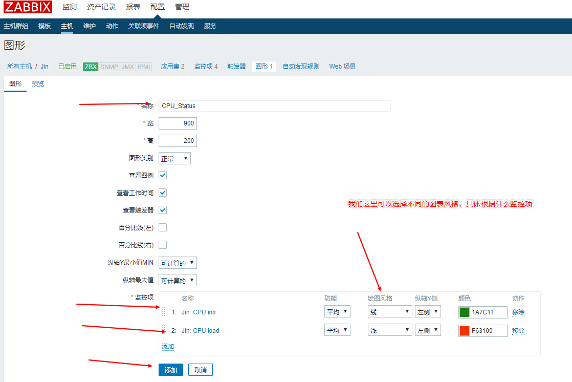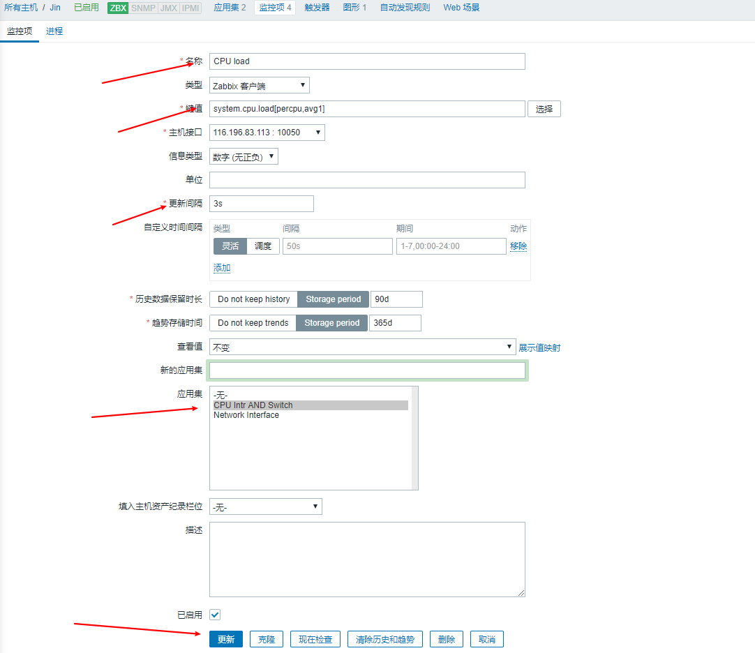 输入CPU Load作为值,在列表中和其他地方,都会显示这个值作为监控项名称.