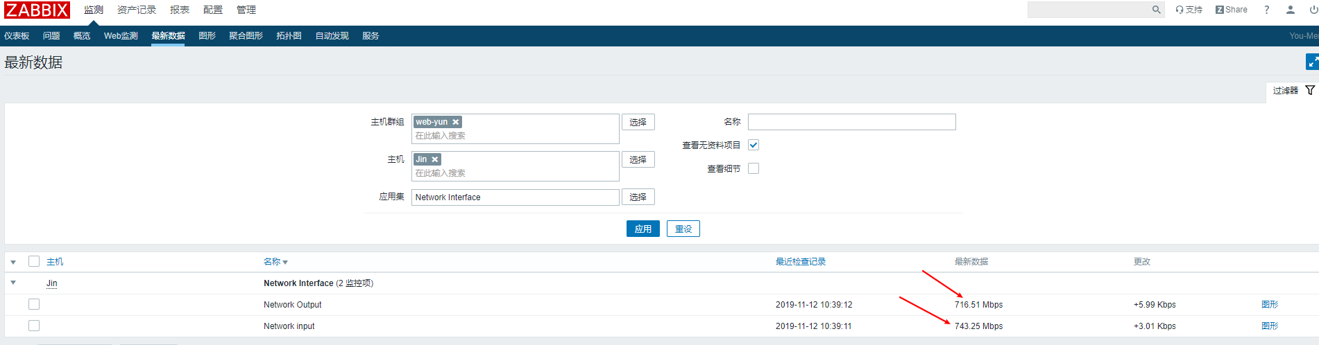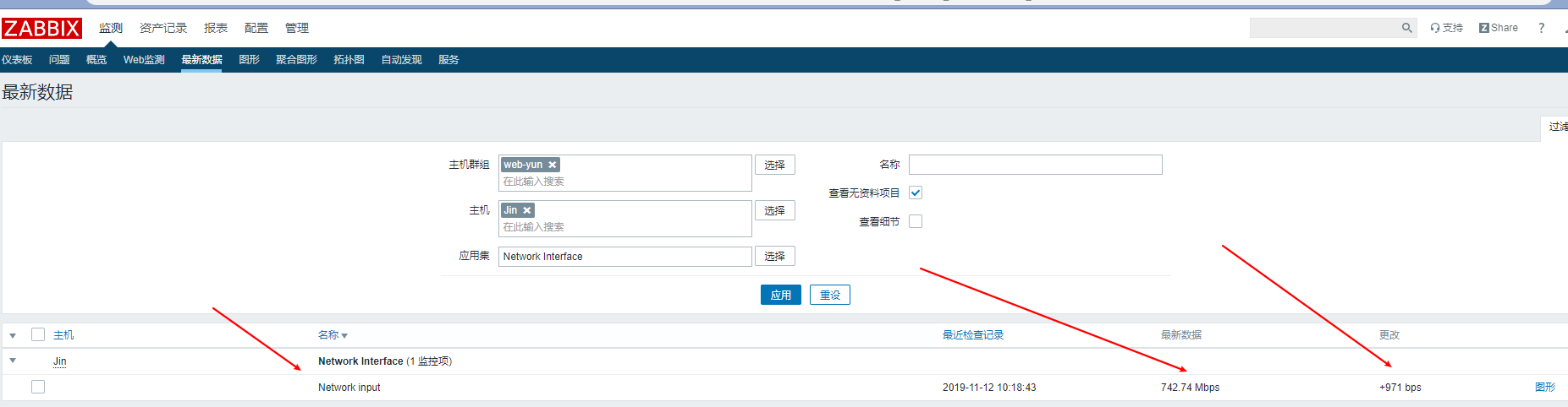 接下来我们检测---> 主机群组里面去查看下最新数据,我们可以从下图看到是有数据的