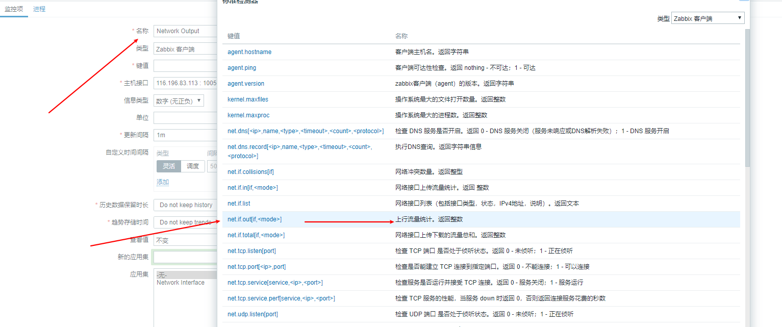 我们此刻做的创建监控项是利用zabbix安装好自带的监控项,跟自定义Key差不多,都是写一个监控脚本然后传参,每一个键值相当于一个监控脚本