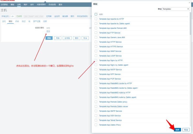 我们到agent端装一个nginx,然后去zabbix的web端找到此模板并挂载.