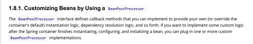 下文就详细说明一下每个 bean 的扩展周期的最佳使用场景BeanPostProcessor