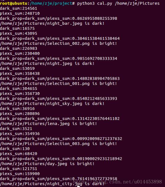 因此要判断图片的亮暗,只需要统计偏暗的像素个数,再除以图片像素的总个数,得到百分比p即可,至于p大于多少即判断为暗,则可以由你自己设置.下面给出代码,此代码可以在装满图片的目录里选出偏暗的图片,然后把这些图片保存下来.