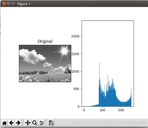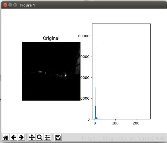 我们可以从上图看到,晚上的图片的灰度值是集中在前段的,如0~30多左右,我们再看一张比较明亮的图片: