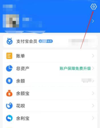 1开支付宝,在“我的”点击右上角的页面“设置”。