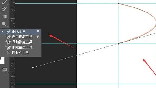 3.然后选择钢笔工具,单击参考线上的点开始画锚点,