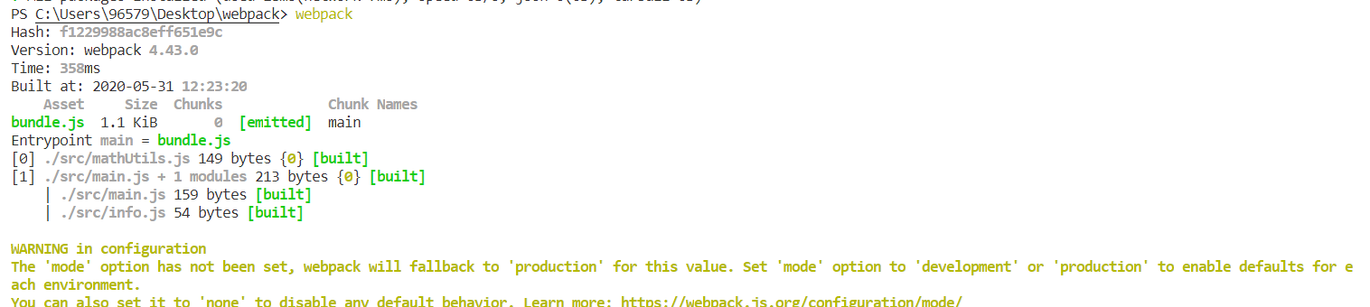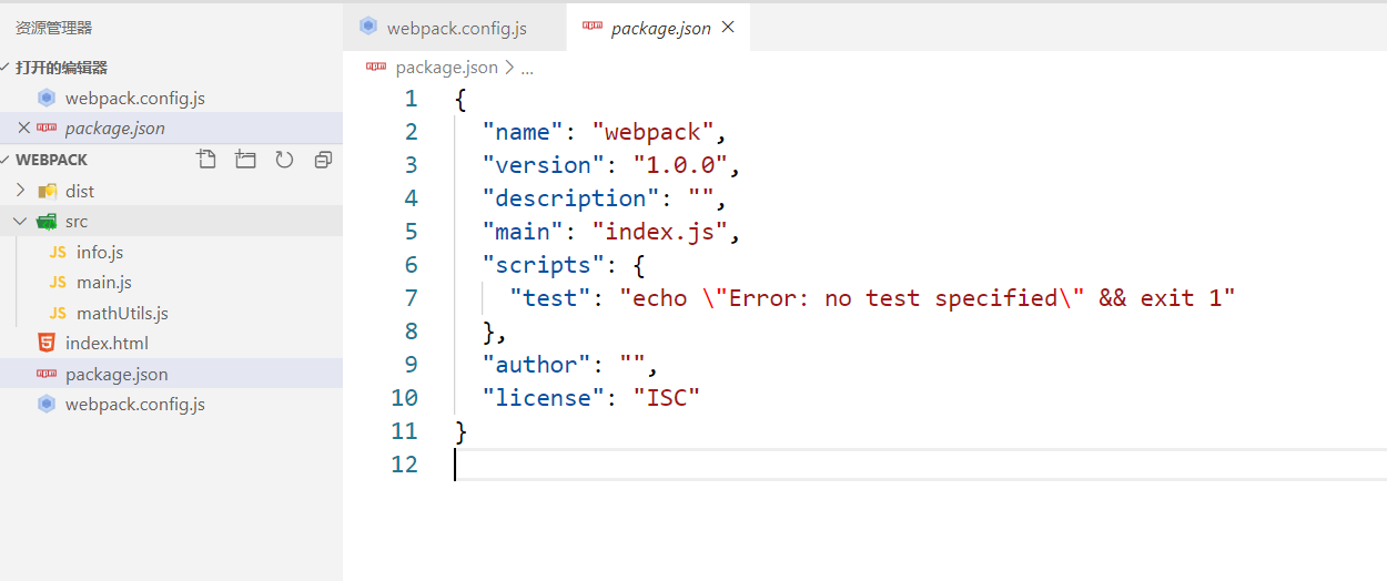 接下来就可以使用webpack来进行打包,不再需要在打包时再加上入口文件和输出文件