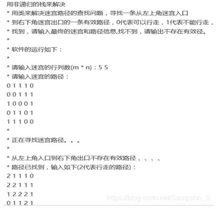 给定一个自定义迷宫,0表示能通过,1表示不能通过。通过程序找出正确的迷宫出路,并将正确的路线改为2输出。