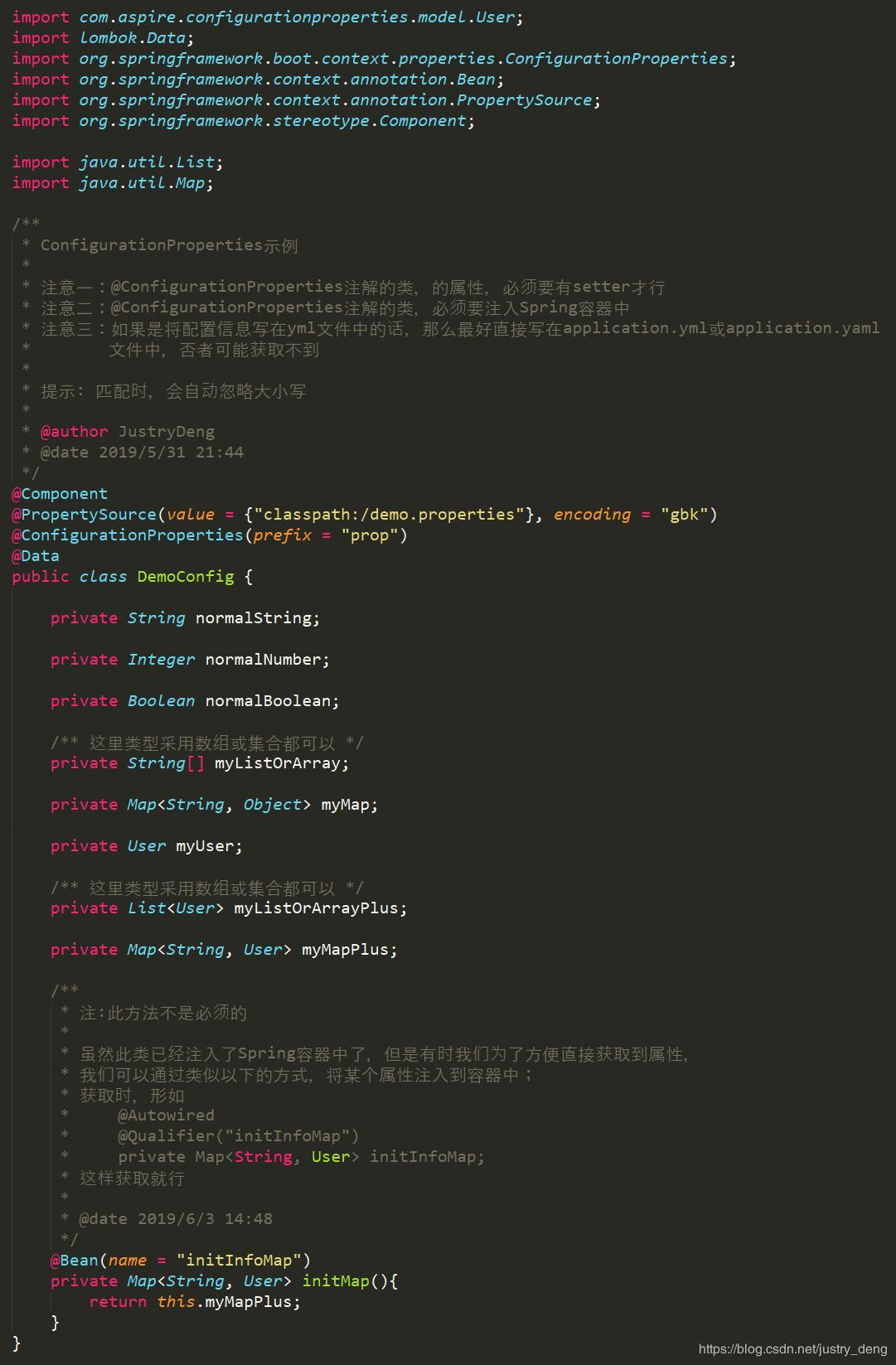 @ConfigurationProperties注解获取配置信息并绑定到对象上示例: