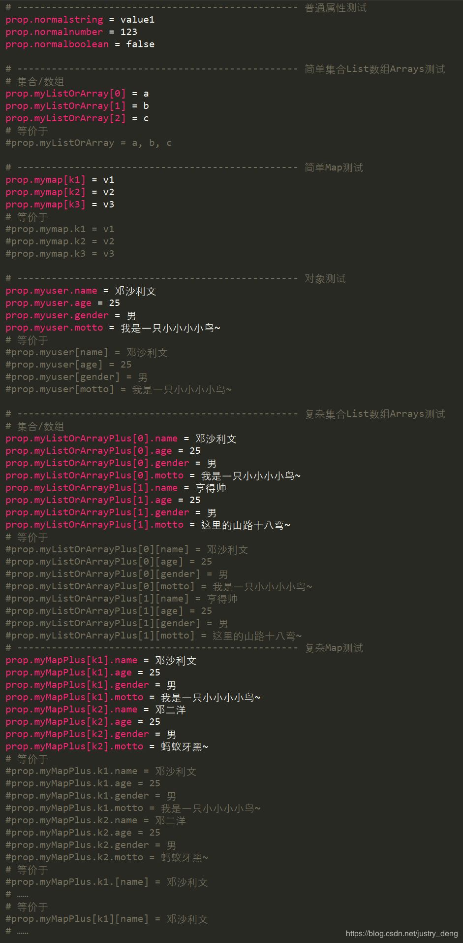 注:一般情况下,第一种、第二种就够用了;但是如果想直接从配置文件中获取到数组、list、map、对象的话,