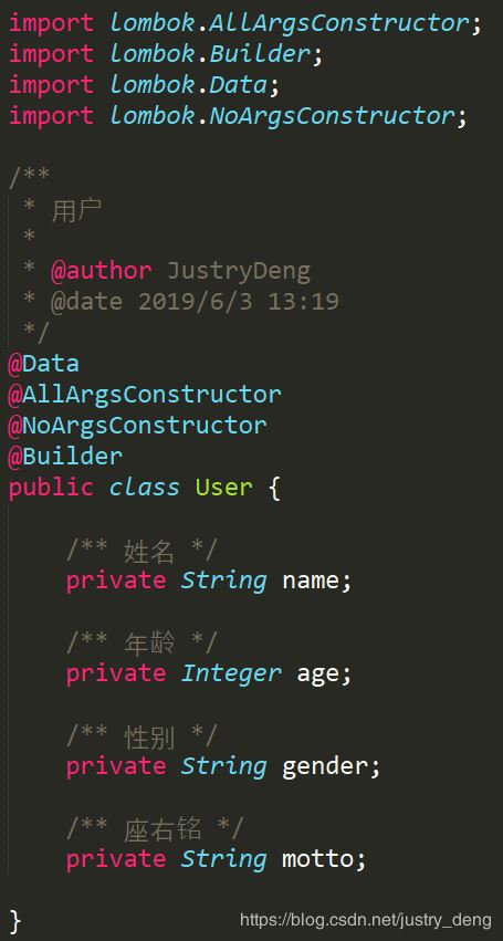 注:上图中的注解是快速开发lombok注解,也可以不使用这些注解,自己写getter、setter等方法。