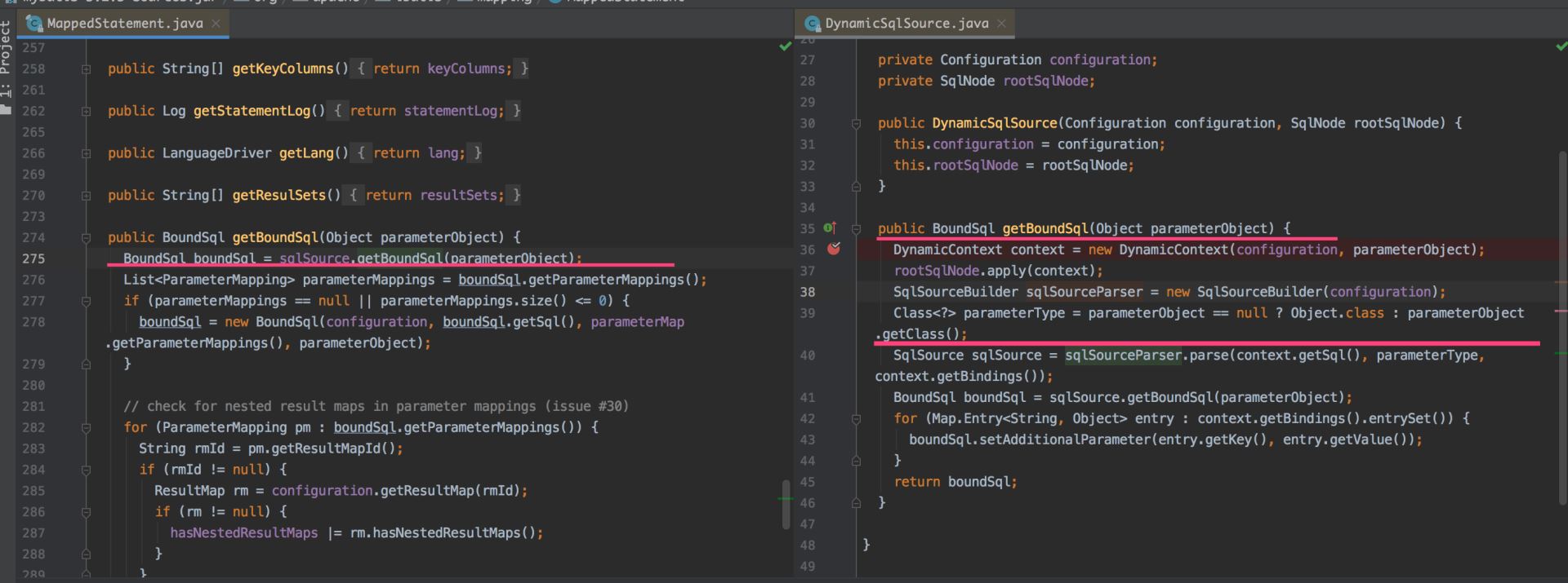 接下来主要关注在获取BoundSql以及参数化语句的流程,也是本次案例中,3.2.3和3.2.4差异比较大的地方。接下来会一些源码部分的介绍。