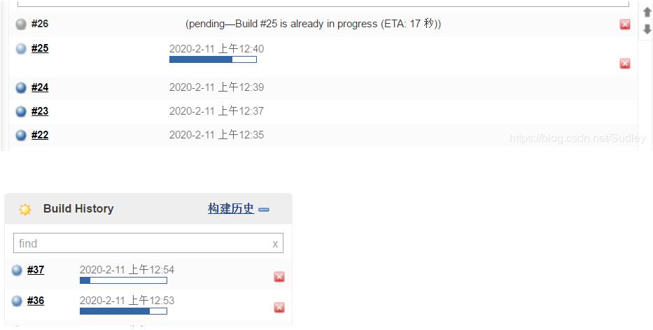 可能还存在下图的情况,这个时候获取的是26的状态,这时候也许你想获取25的状态,26是不小心误操作触发的,这个时候任务的最新状态也许就无法满足预期要求,或者是支持并发构建的job场景中就不适用了,关键还是需要结合应用场景制定对应的方案。