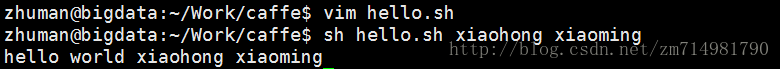 写一个hello.sh脚本,需要传入两个参数: