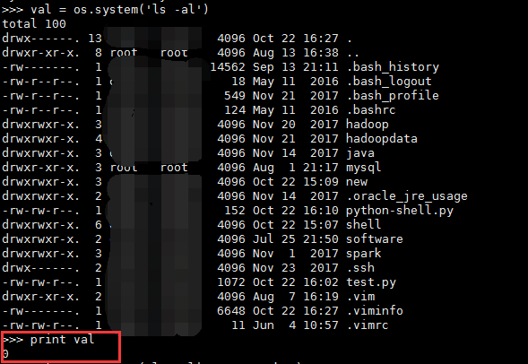 val = os.system('ls -al')