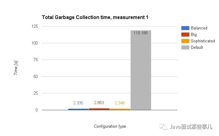 会发现,对比其它设置, GC 在默认设置下会变得异常忙碌。