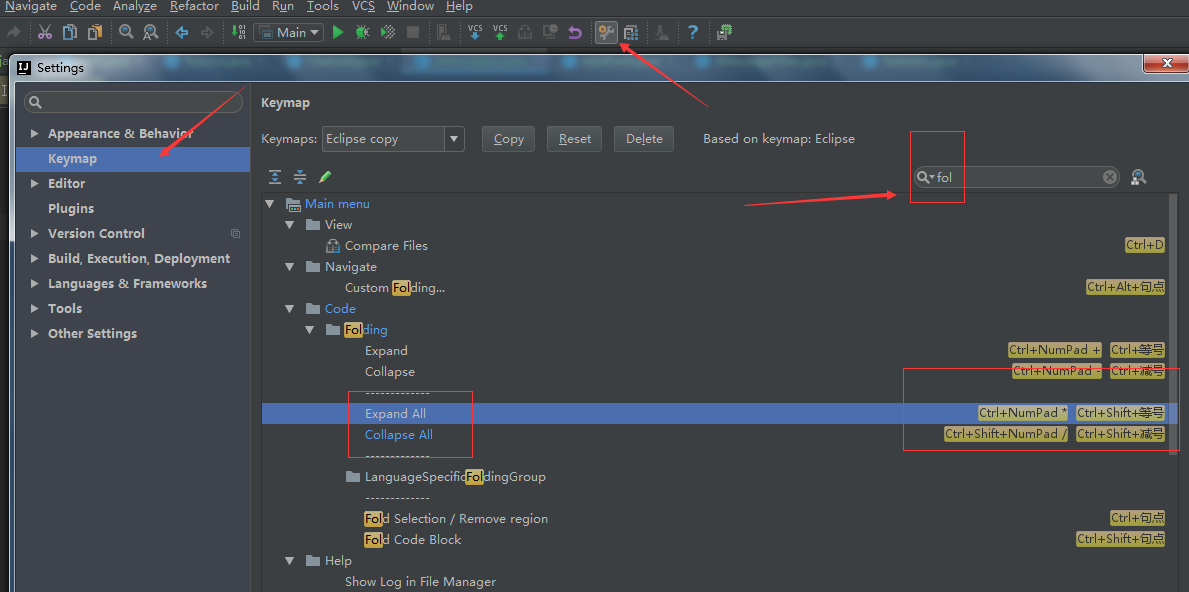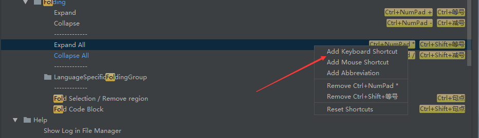 我就把折叠所有的快捷键设置成:ctrl+shift+减号。
