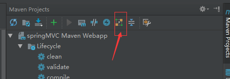 Reimport All Maven Projects表示根据pom.xml重新载入项目。一般单我们在pom.xml添加了依赖包或是插件的时候,发现标注 4 的依赖区中没有看到最新写的依赖的话,可以尝试点击此按钮进行项目的重新载入。 - 第六个按钮: