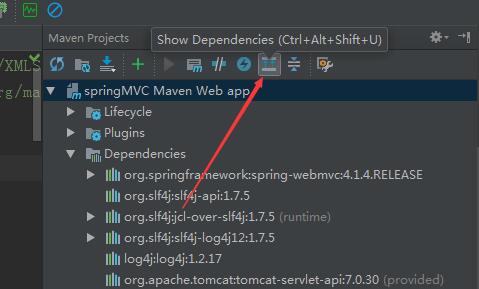 Show Dependencies显示项目依赖的结构图,可以方便我们直观项目的依赖包情况。这个功能有些具体的操作下面会专门进行讲解。