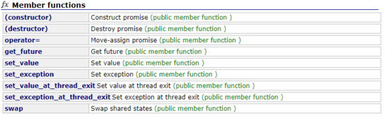 std::promise<int> pr; std::thread t([](std::promise<int>& p){ p.set_value_at_thread_exit(9); },std::ref(pr)); std::future<int> f = pr.get_future(); auto r = f.get();