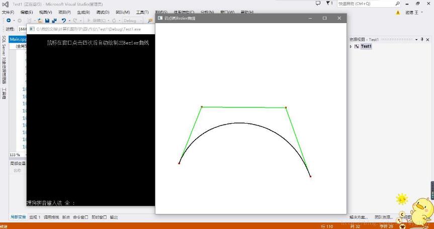 puts("\n\t鼠标在窗口点击四次后自动绘制出Bezier曲线");