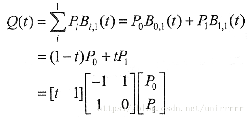 线性Bezier Curve由两个控制点决定: