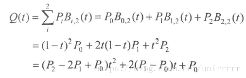 二次Bezier Curve由三个控制点决定: