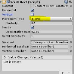 在使用ScrollRect的时候,想滑动流畅然后定位,既待惯性的滚动设置,如图MovementType指定为Elastic则为带惯性的滑动模式,同时调整Inertia为惯性系数,值越大则惯性表现越大,即滑动手离开后自由滑动到停止所需的时间也越长。Inertia=0时则表示不带惯性,滑动时手离开 滑动即停止。