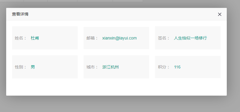 一开始用layui做了几个管理系统,所以用起来觉得确实很容易上手,管理后台最常用的就是form和table以及弹窗类。layui提供的form table layer已经是很简洁好用了,抛开底层的封装不说,给我们展现出来的使用方法我觉得是非常简化了。管理用到的除了form table layer之外,经常会有一些统计数据展示或者详情页这种内容展示。那么一些用到的统计数据(除图表),如文字统计型数据展示。这个时候,用layui的基于laytpl展现这种功能其实是极好的。