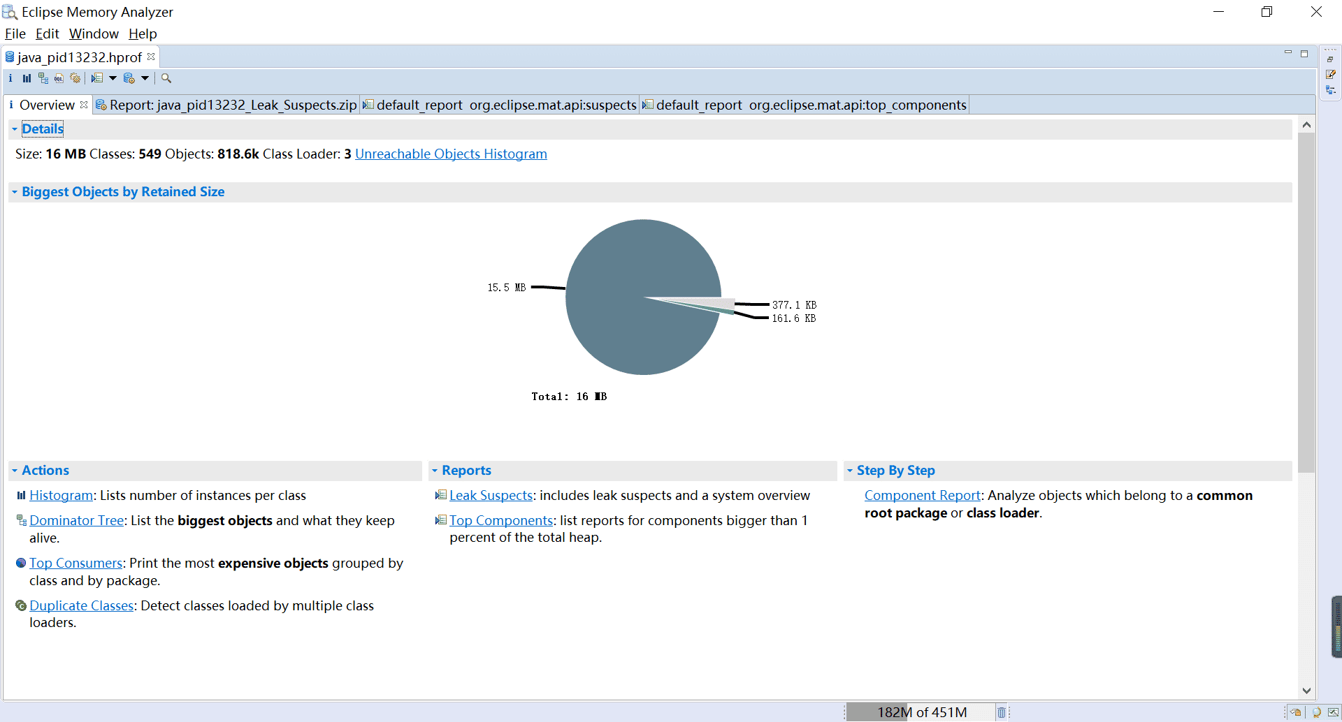 打开需要分析的堆转储文件,分析后会展示一个概要预览