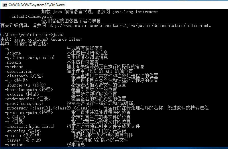 6、此时关闭命令窗口java环境变量就已经设置好了,可以运行窗口输入cmd后,分别运行:java和javac进行测试出现如下字样即表示java环境变量已经配置好了。