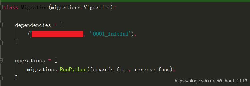 5.根据自己的的迁移文件初始化自己的数据到数据库,这时在命令行运行,python manage.py makemigrations --enmpty + 自己的app名字