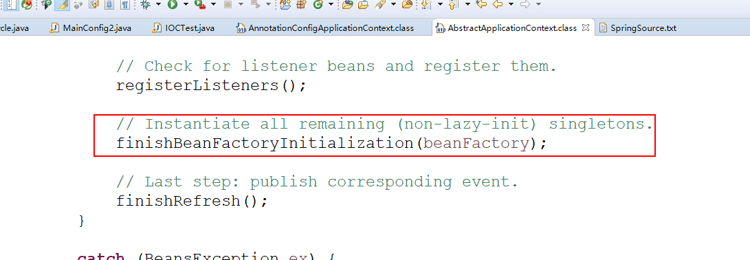 2、AbstractApplicationContext类 --> refresh()方法的 --> finishBeanFactoryInitialization(beanFactory);方法