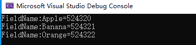 Console.WriteLine("FieldName:{0}={1}",item.Value,item.Key);