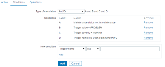 New condition:Trigger severity = Warning