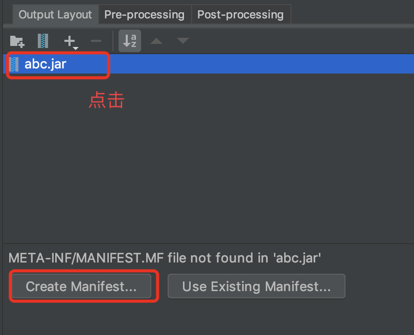 在 Jar 里面没有添加任何东西的时候,点击 xxx.jar ,底部会显示 添加 Manifest 的操作按钮。