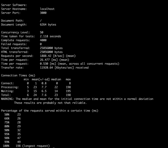 ab -n 4000 -c 50 -s 120 -r http://localhost:3000/