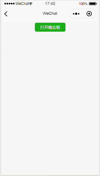 开启模态框,只需要在标签上绑定一个事件,将data里的showModal置为true即可。